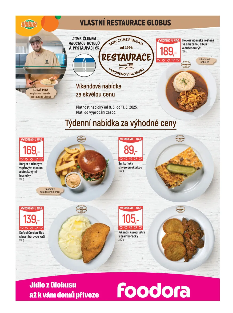 Tato nabídka platí od 9.5. do 11.5.2025 a je dostupná do vyprodání zásob. Objednané jídlo vám přiveze Foodora až domů. Nechte se zlákat chutnými pokrmy z Globusu!