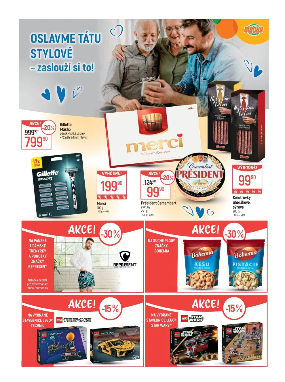 V našem letáku najdete také Merci čokoládu 400 g a Président Camembert ve dvou druzích po 250 g. Pro milovníky suchých plodů máme v nabídce značku Bohemia, včetně kešu a pistácií. A nezapomeňte na vybrané stavebnice LEGO Star Wars! Akce platí pouze pro hypermarket Praha-Šterboholy.