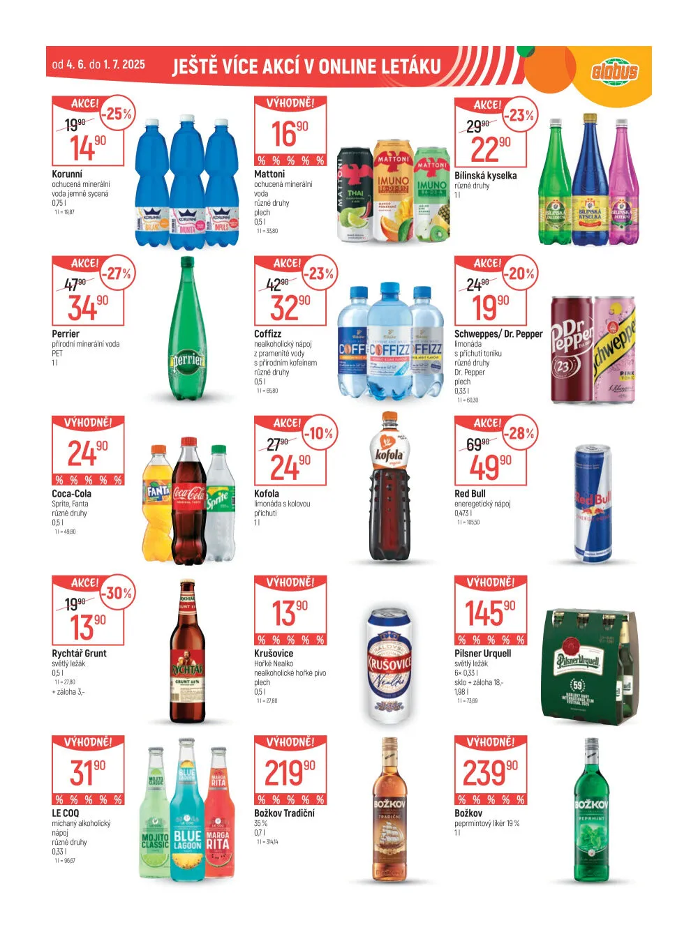 A to není vše! V nabídce najdete také energetický nápoj Red Bull za 14590 Kč a tradiční likér Božkov. Nezapomeňte se podívat na další akce v online letáku!