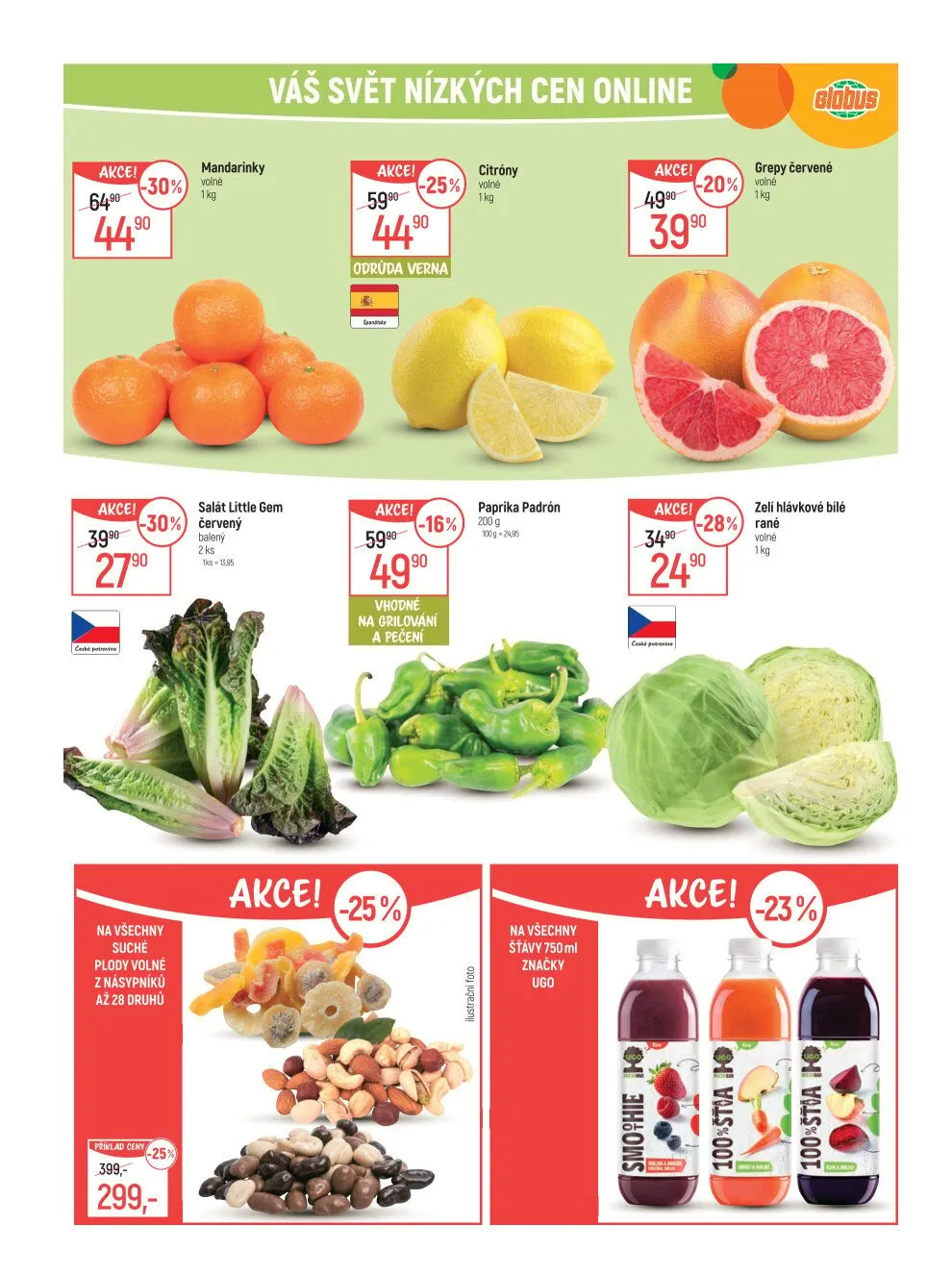 V nabídce jsou také červené grepy za 39,90 Kč a hlávkové bílé zelí za výhodnou cenu.