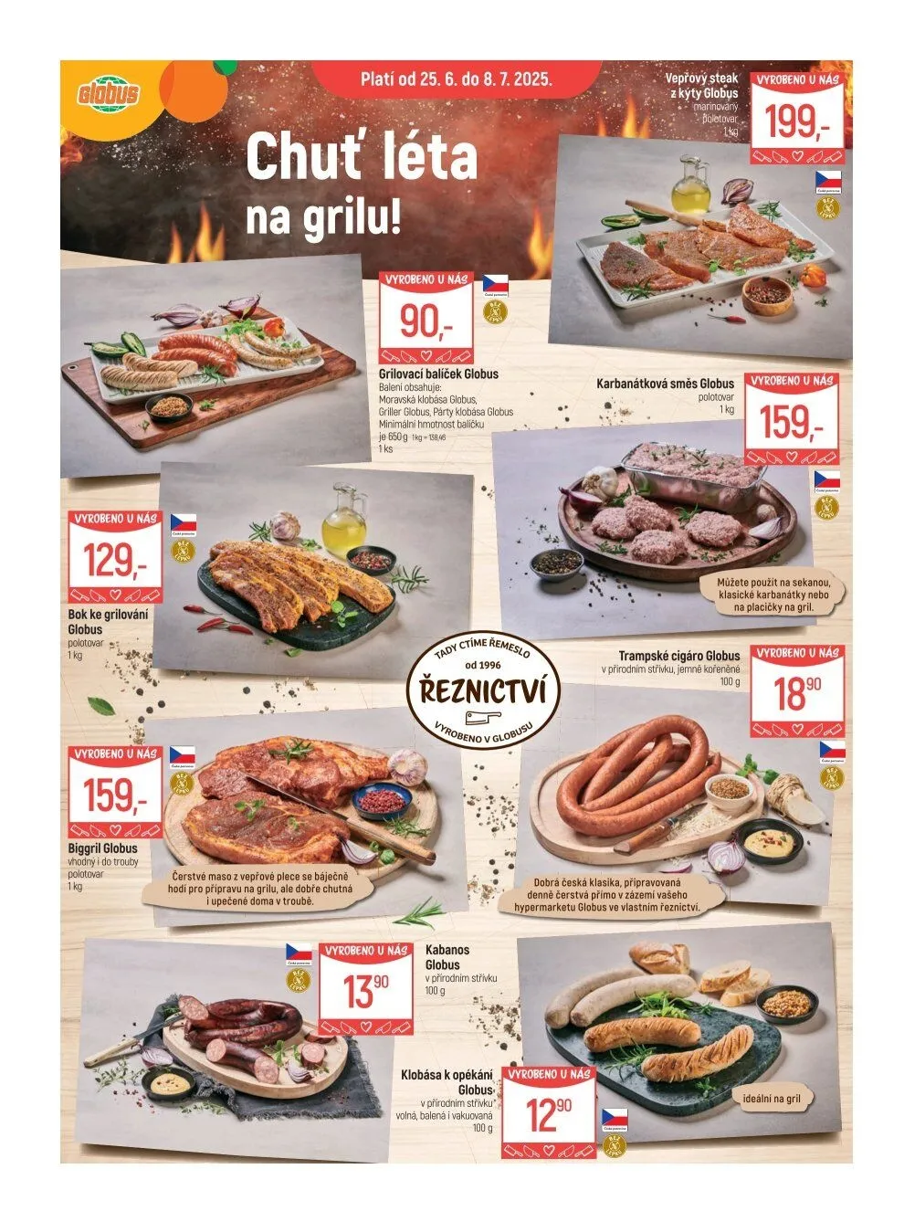 Všechny produkty jsou vyrobeny přímo v řeznictví Globus a garantují čerstvost a kvalitu.