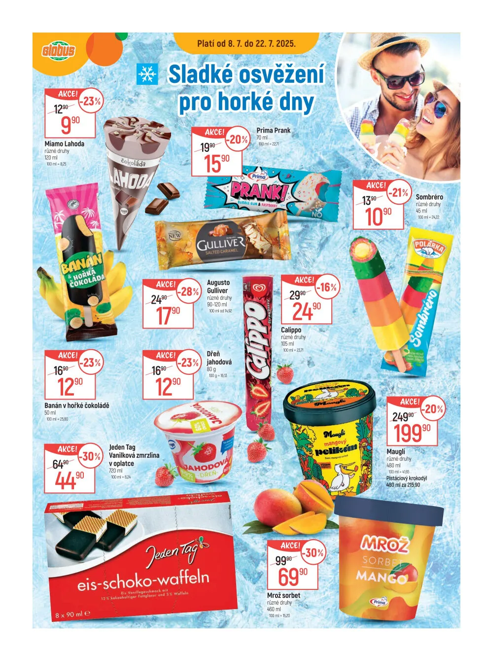 V letáku obchodu Globus najdete skvělé produkty pro osvěžení v horkých dnech, které platí od 8.7. do 22.7.2025.