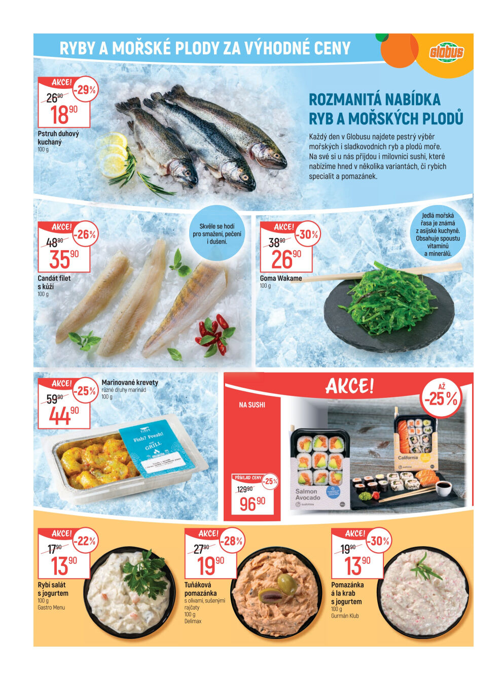 V letáku obchodu Globus najdete širokou nabídku ryb a mořských plodů za výhodné ceny!