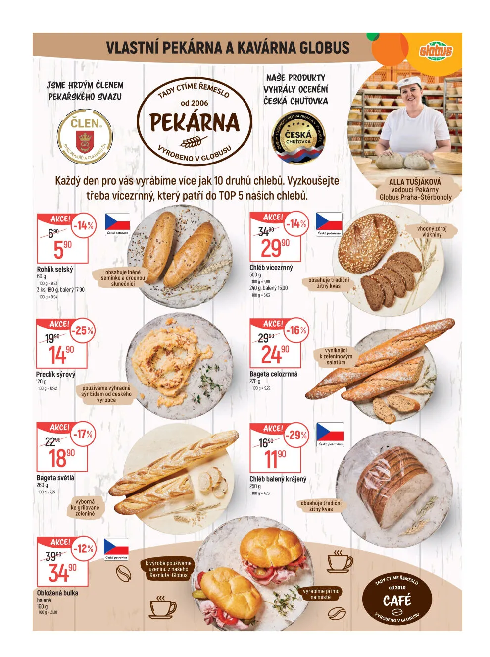 V letáku obchodu Globus najdete širokou nabídku čerstvých pekárenských výrobků, které denně vyrábíme s láskou a péčí. Naše pekárna se pyšní více než 10 druhy chlebů, mezi nimiž vyniká vícezrnný chléb, který patří do top 5 našich produktů.