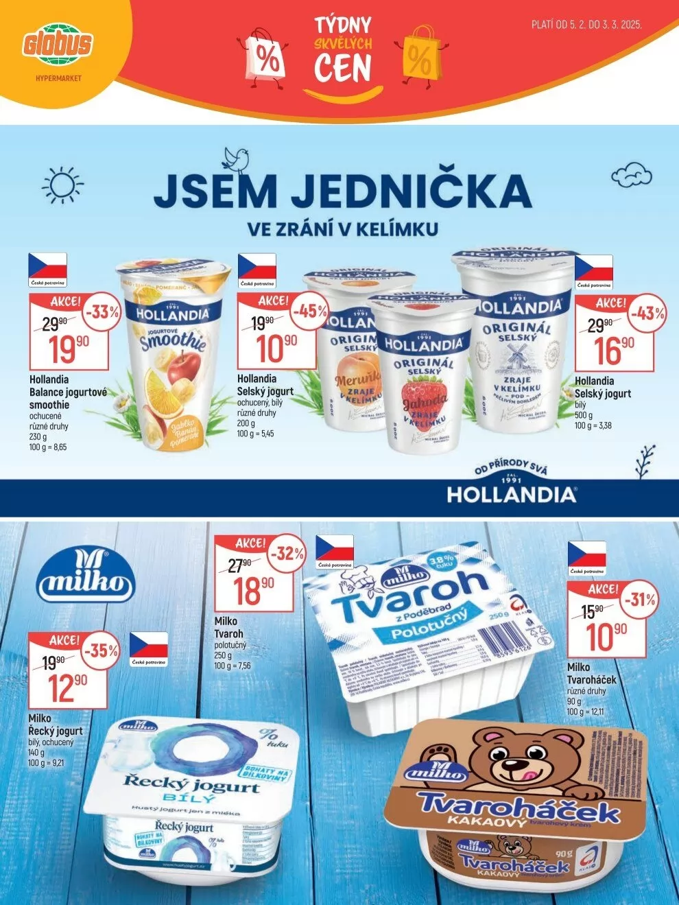 V letáku obchodu Globus najdete skvělé akční nabídky na různé jogurty a tvarohy.