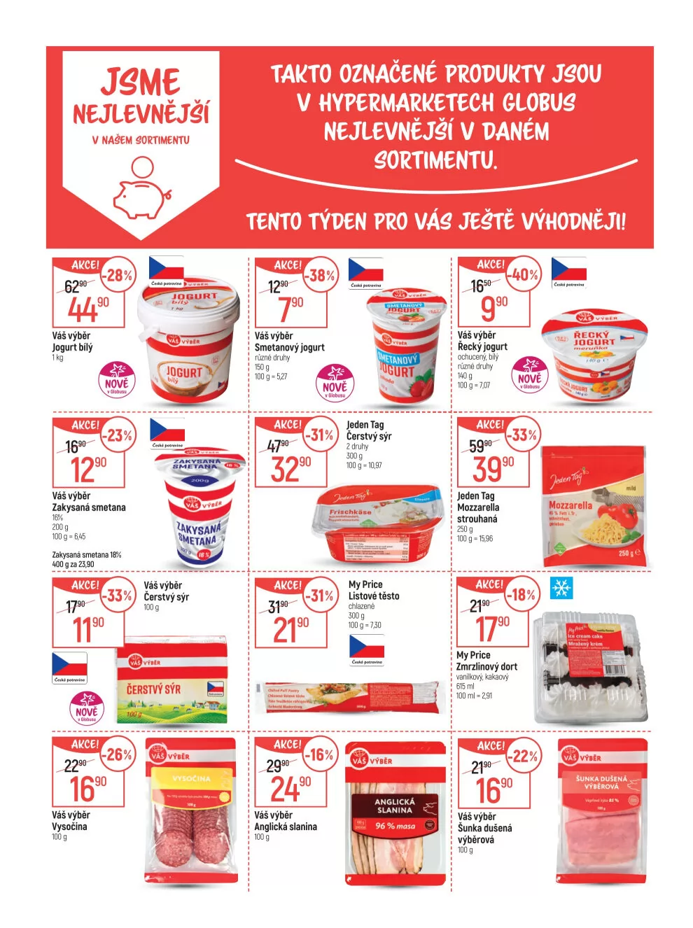 Mezi nejlevnějšími položkami se objevují jogurty, zakysaná smetana a čerstvé sýry.