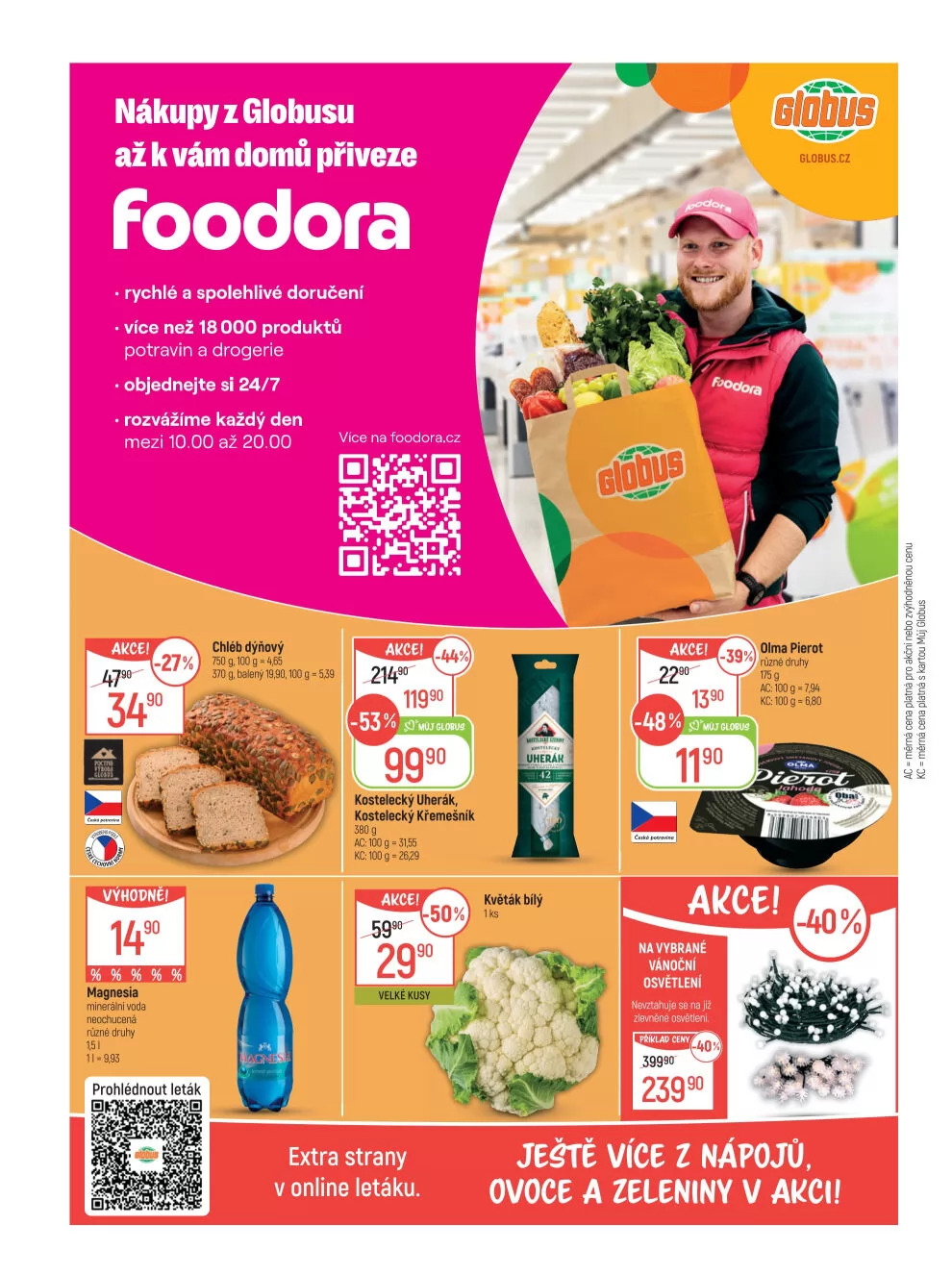 V letáku obchodu Globus najdete širokou nabídku produktů, které si můžete objednat pohodlně z domova přes Foodora.