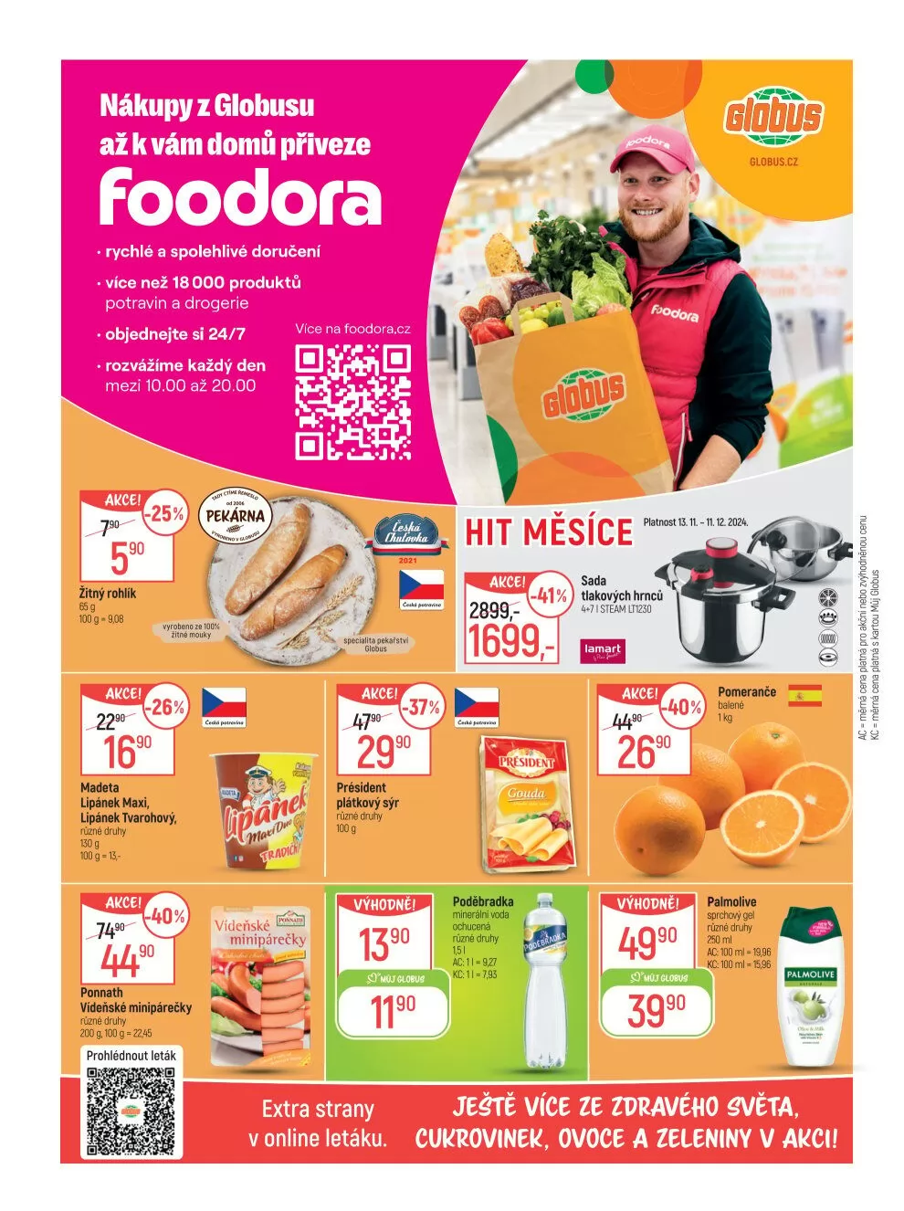 V letáku obchodu Globus najdete širokou nabídku produktů, které si můžete objednat pohodlně z domova prostřednictvím služby Foodora.