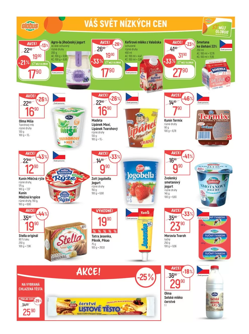 V letáku obchodu Globus najdete širokou nabídku mléčných produktů za skvělé ceny.