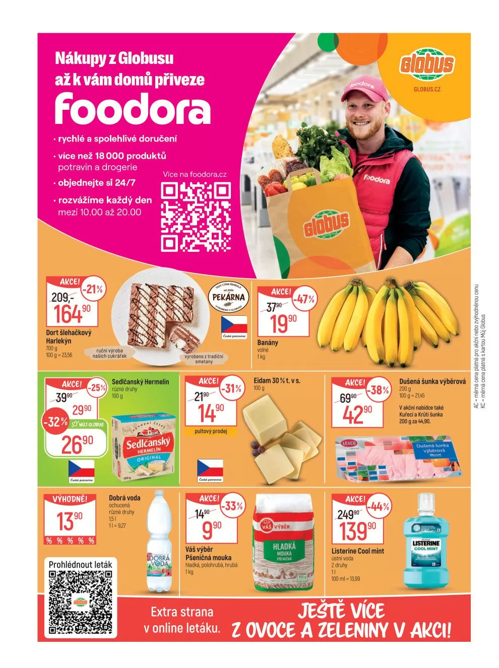V letáku obchodu Globus najdete širokou nabídku produktů, které si můžete objednat a nechat si je doručit až domů prostřednictvím služby Foodora. Nabízíme více než 18 000 produktů, včetně potravin a drogerie, s možností objednání 24/7 a doručením každý den mezi 10.00 a 20.00.
