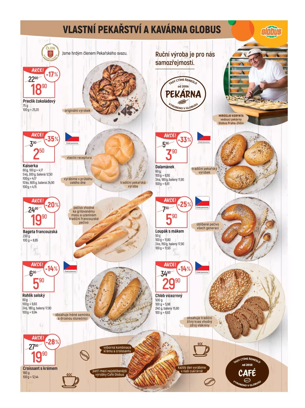 V letáku obchodu Globus najdete širokou nabídku čerstvého pečiva a lahodných cukrářských výrobků.