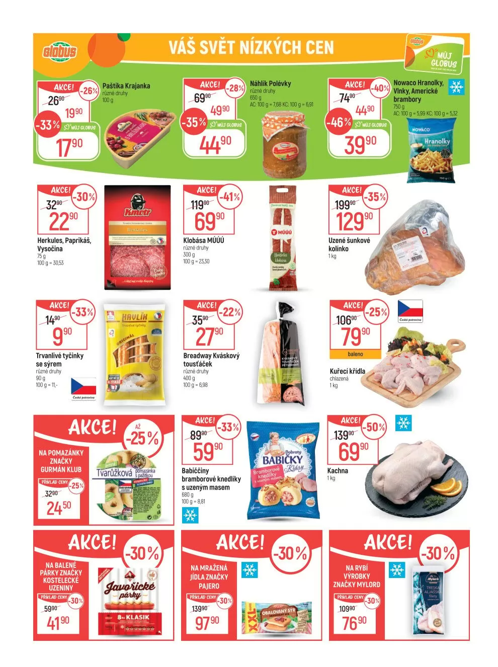 Nezapomeňte na paštiku Krajanka a mražené hranolky, které jsou v akci!