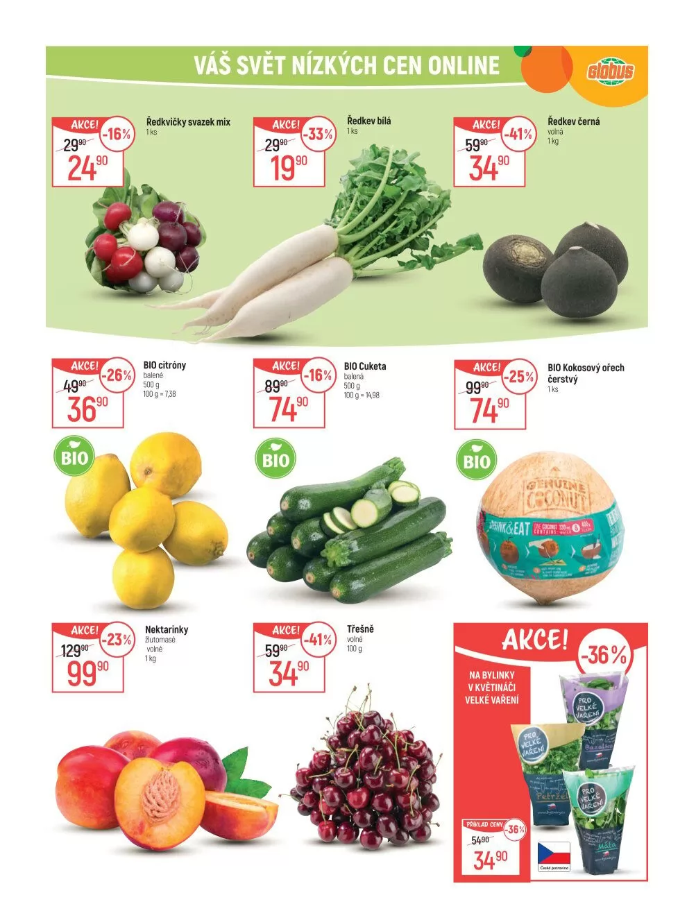 Mezi akčními položkami se objevují bio citróny, ředkvičky v mixu a žlutomasé nektarinky.