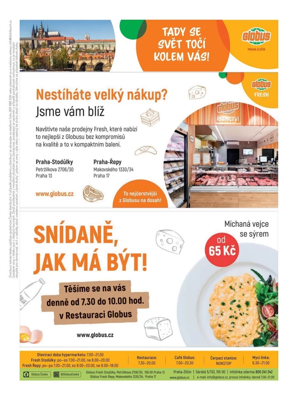 Café Globus je otevřeno od 7.00 do 20.30 hod.