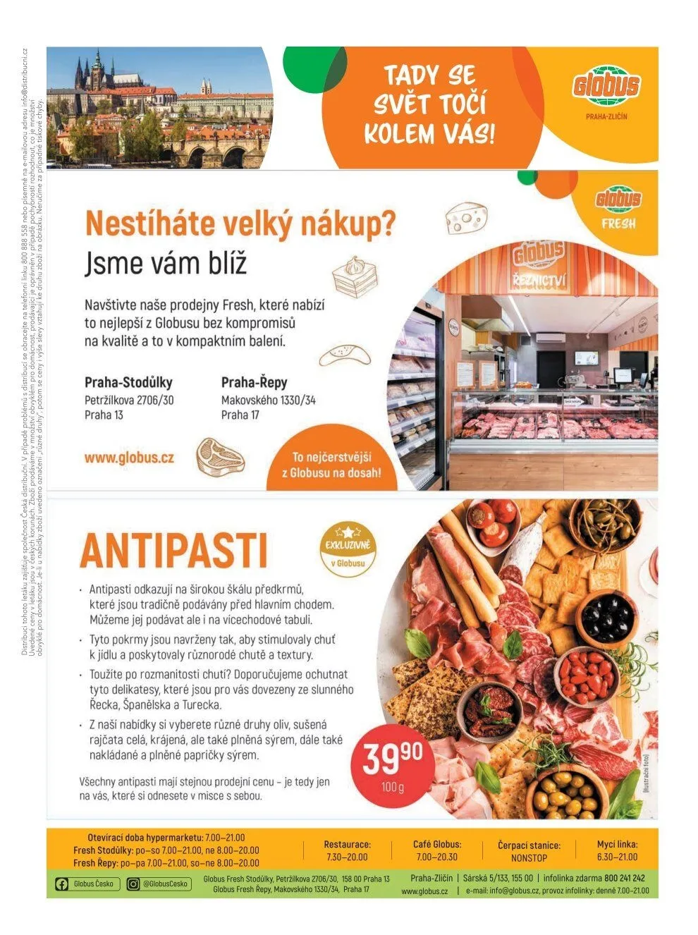 Otevírací doba našich hypermarketů je od 7:00 do 21:00, s rozšířenou otevírací dobou pro Café Globus a další služby. Těšíme se na vaši návštěvu!