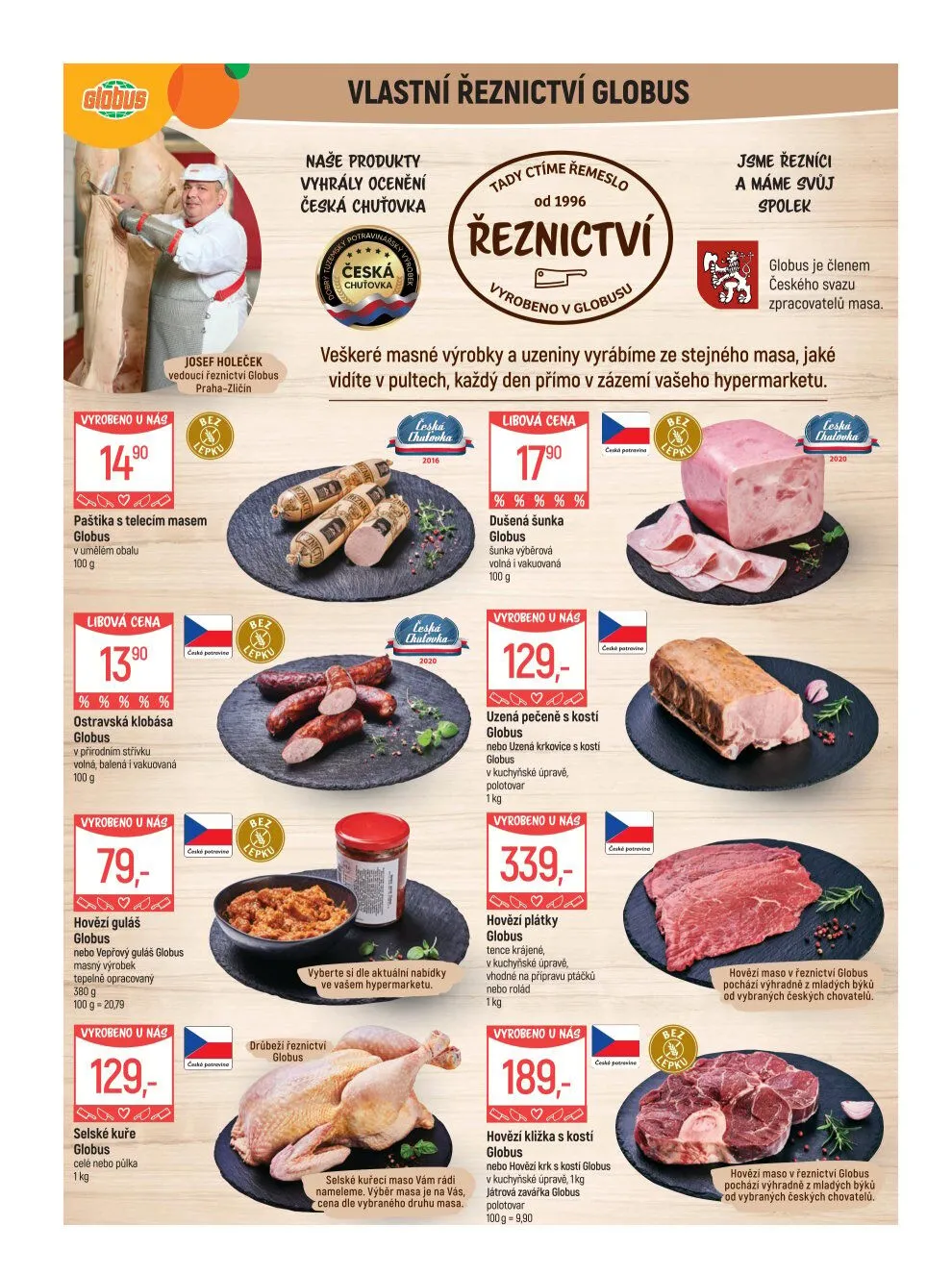 V našem řeznictví Globus ctíme tradiční řemeslo a nabízíme široký výběr kvalitních masných výrobků a uzenin. Od roku 1996 vyrábíme veškeré produkty přímo v zázemí hypermarketu, což zaručuje čerstvost a kvalitu. Naše paštika s telecím masem, dušená šunka, ostravská klobása a hovězí guláš jsou jen některé z oceněných specialit, které si můžete vychutnat.