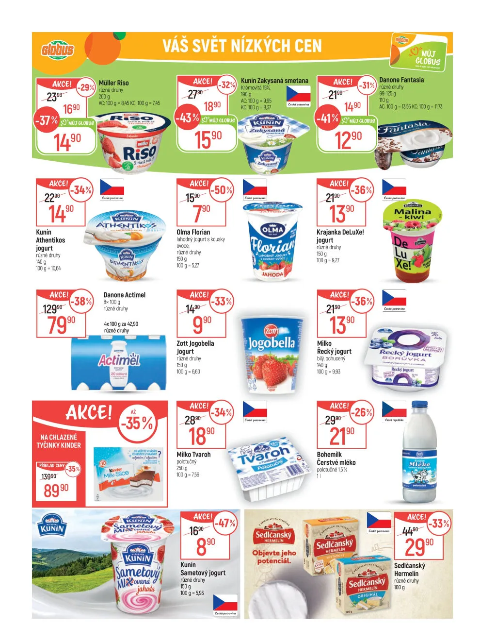 Mezi akčními položkami se objevují různé druhy jogurtů, jako je Kunin Athentikos jogurt, Müller Riso a Danone Actimel.