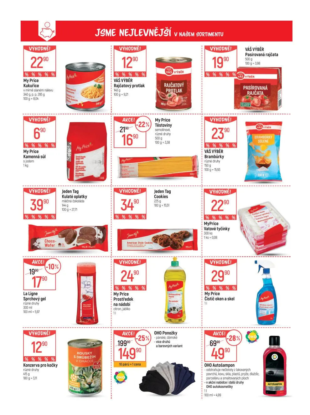 - Těstoviny semolinové v akci, 100 g za 5,38 Kč.
