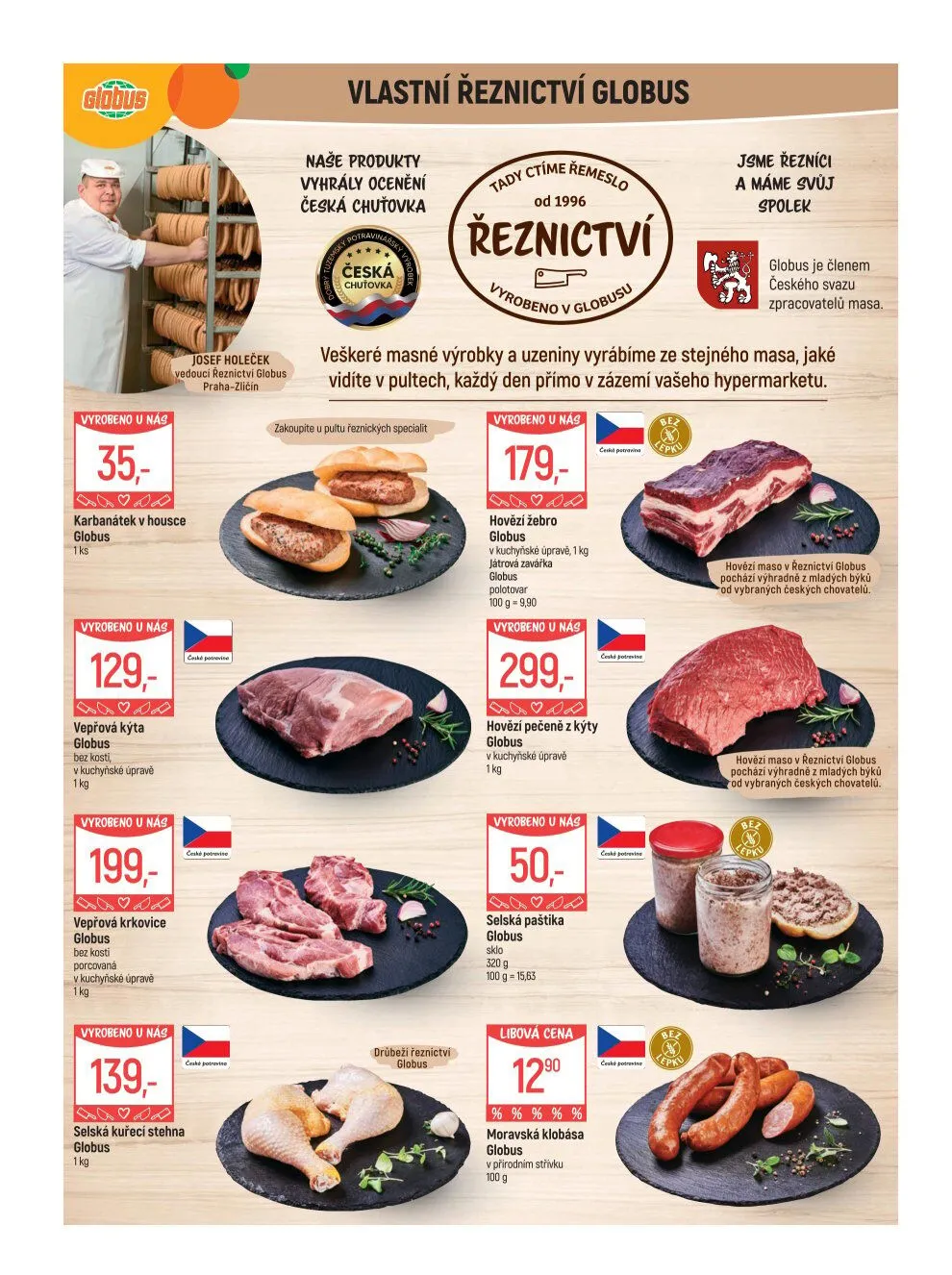 Každý den vyrábíme veškeré masné výrobky přímo v zázemí našeho hypermarketu, což zaručuje čerstvost a kvalitu. Naše nabídka zahrnuje například karbanátky v housce za 35 Kč, vepřovou kýtu v kuchyňské úpravě za 129 Kč, nebo vepřovou krkovici bez kosti za 199 Kč.