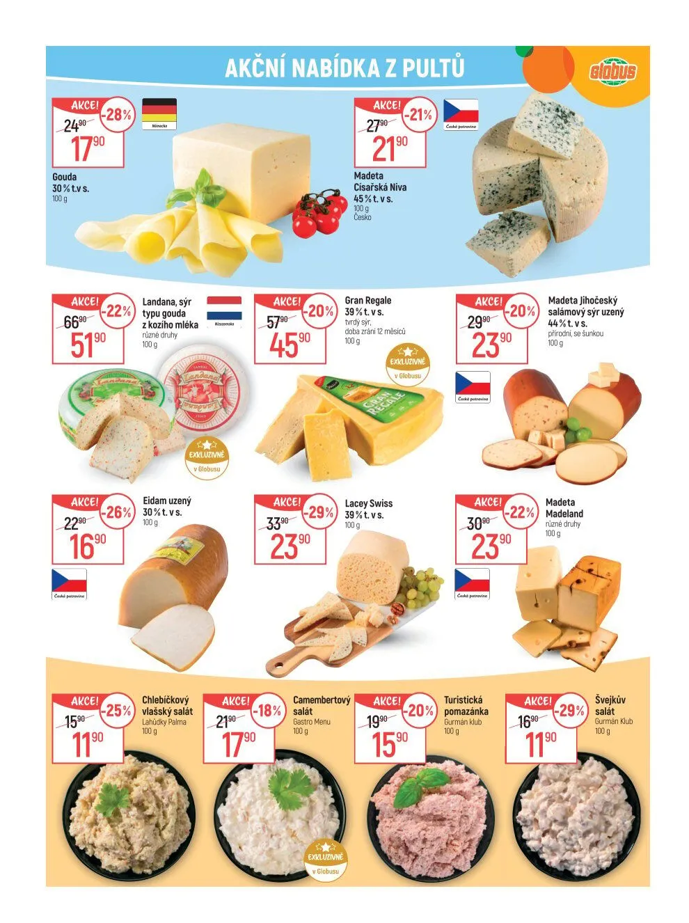 - Gouda s 30 % tuku v sušině nyní za akční cenu 90 Kč za 100 g.