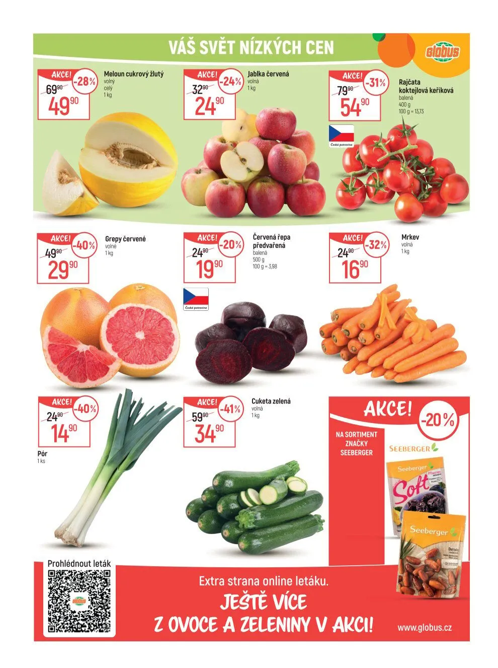 V obchodě Globus najdete širokou nabídku čerstvého ovoce a zeleniny za nízké ceny!