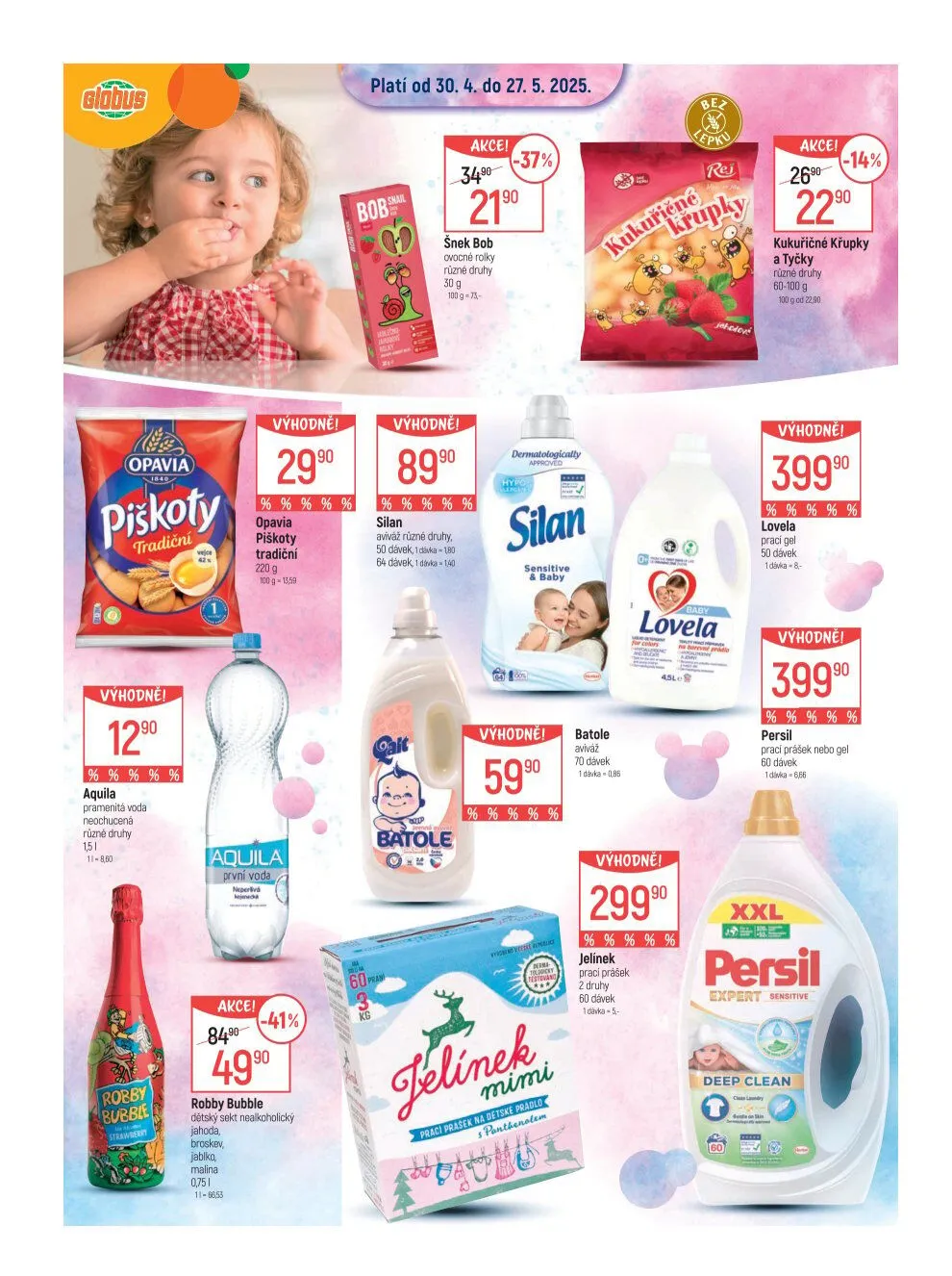 V letáku obchodu Globus najdete skvělé akce platné od 30.4. do 27.5.2025. Nabízíme široký výběr produktů, jako jsou šneci Bob a různé druhy ovocných rolek. Nezapomeňte na tradiční piškoty Opavia, které jsou nyní za výhodnou cenu.