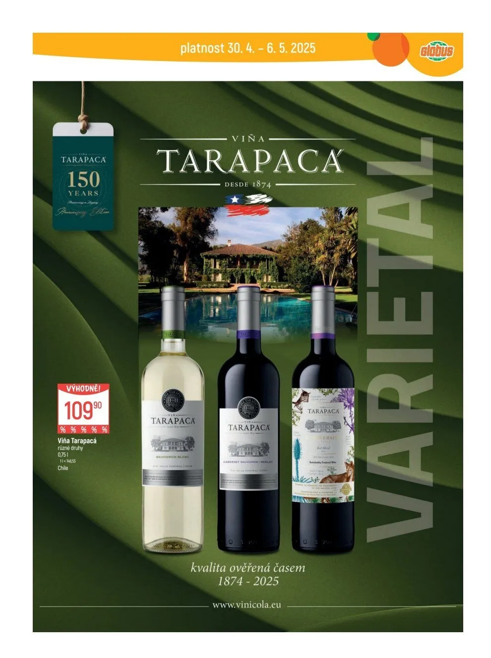 Objevte jedinečné víno Vi?a Tarapacá, které se pyšní více než 150letou tradicí. Naše různé druhy vína, vyrobené s láskou a péčí od roku 1874, vám přinesou nezapomenutelné zážitky. Kvalita ověřená časem, to je Vi?a Tarapacá. Nezapomeňte, že platnost našich nabídek je do 30. 4. a od 6. 5. 2025. Navštivte nás na www.vinicola.eu a objevte kouzlo našich vín!