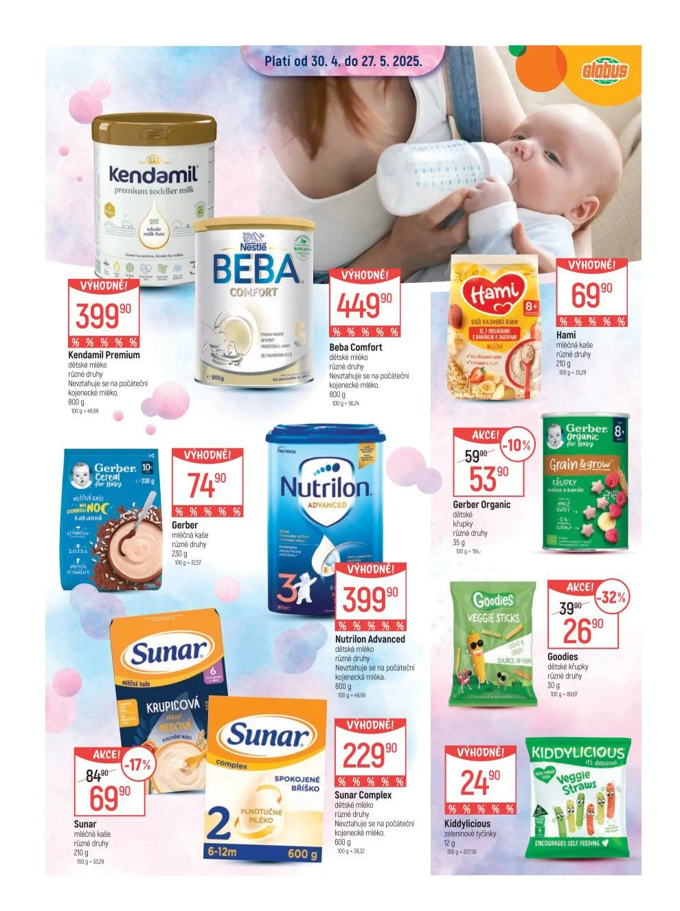 V letáku obchodu Globus najdete širokou nabídku dětských mlék a kaší za výhodné ceny!