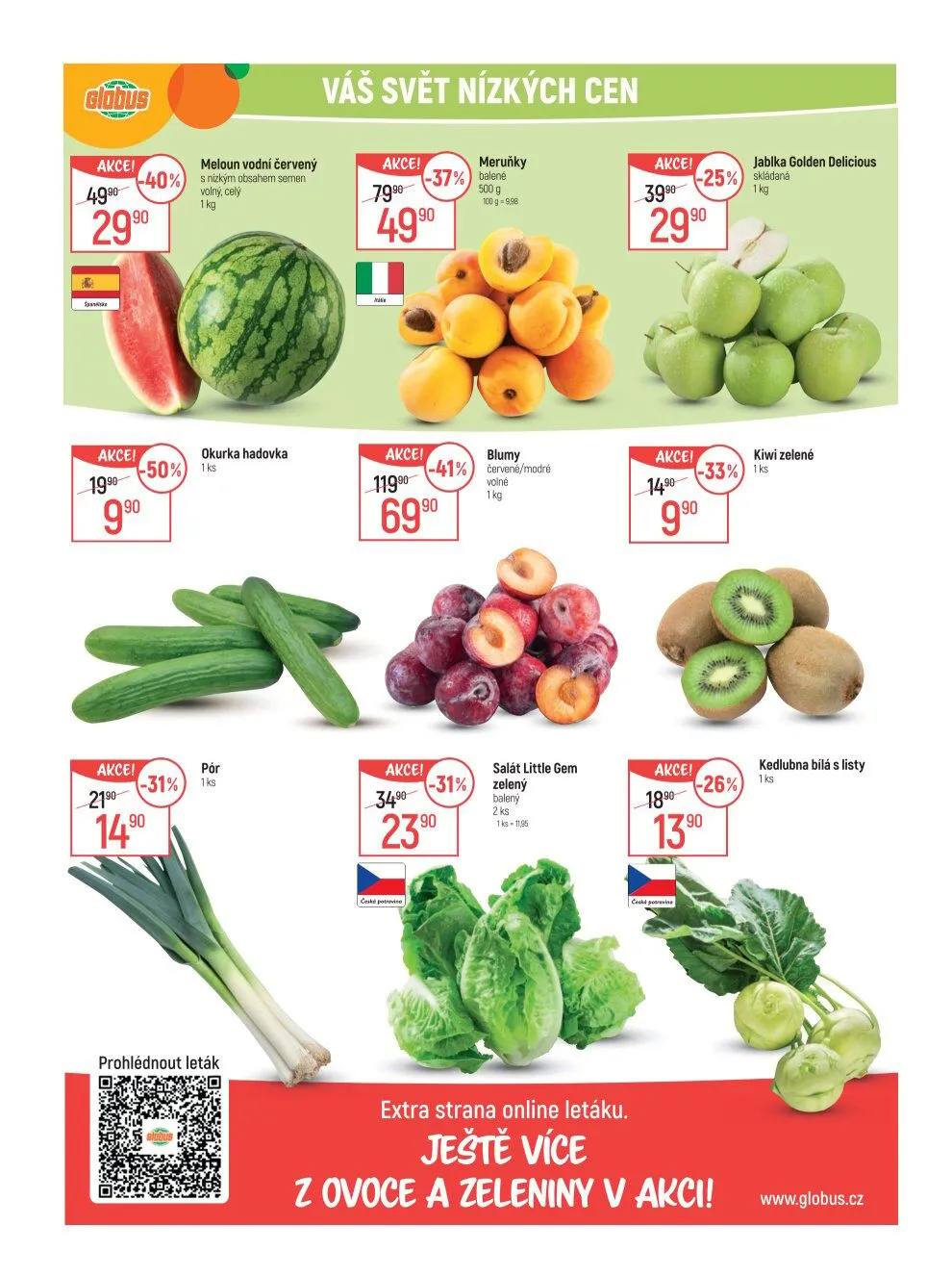 V letáku obchodu Globus najdete širokou nabídku čerstvého ovoce a zeleniny za nízké ceny.