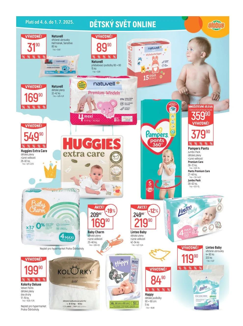 Od 4.6. do 1.7.2025 můžete využít skvělé akce na dětské pleny Huggies Extra Care v různých velikostech za cenu 549,90 Kč.