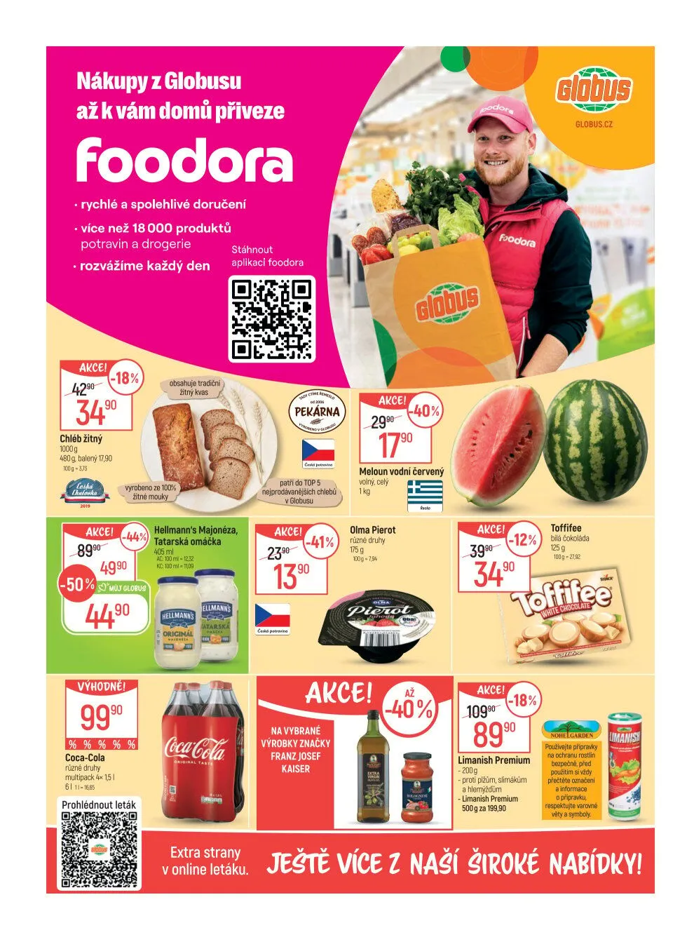 Mezi aktuálními akcemi se můžete těšit na žitný chléb, který je vyroben z tradičního kvasu a patří mezi nejprodávanější produkty v Globusu. Dále máme v akci vodní meloun, různé druhy Olma pierot a Coca-Colu v multipacku.