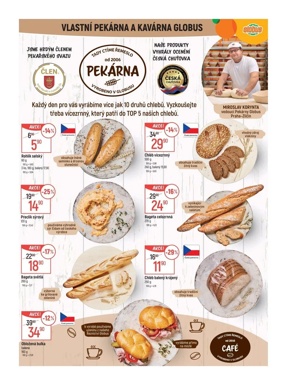 V obchodě Globus najdete širokou nabídku čerstvých pekárenských a cukrářských výrobků. Naše pekárna, hrdý člen pekárenského svazu, vyrábí každý den více než 10 druhů chlebů. Mezi nejoblíbenější patří vícezrnný chléb, který se umístil v top 5 našich produktů.