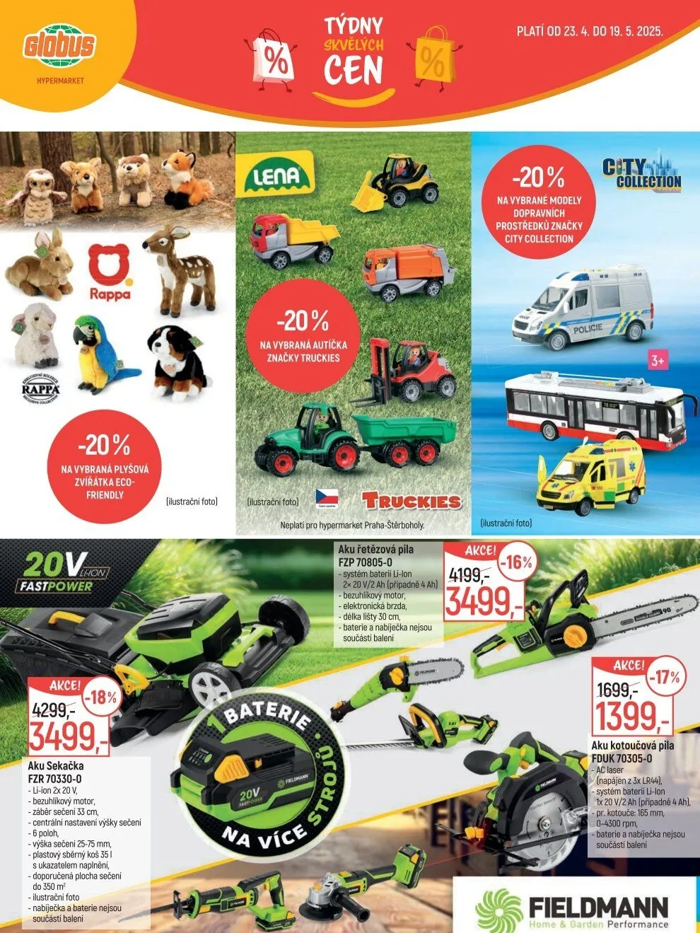 V letáku obchodu Globus najdete širokou nabídku produktů, které potěší každého. Mezi nimi jsou vybraná plyšová zvířátka eco-friendly, ideální pro děti. Dále nabízíme aku sekačku FZR 70330-0 s bezuhlíkovým motorem a centrálním nastavením výšky sečení, která je skvělá pro údržbu vaší zahrady.