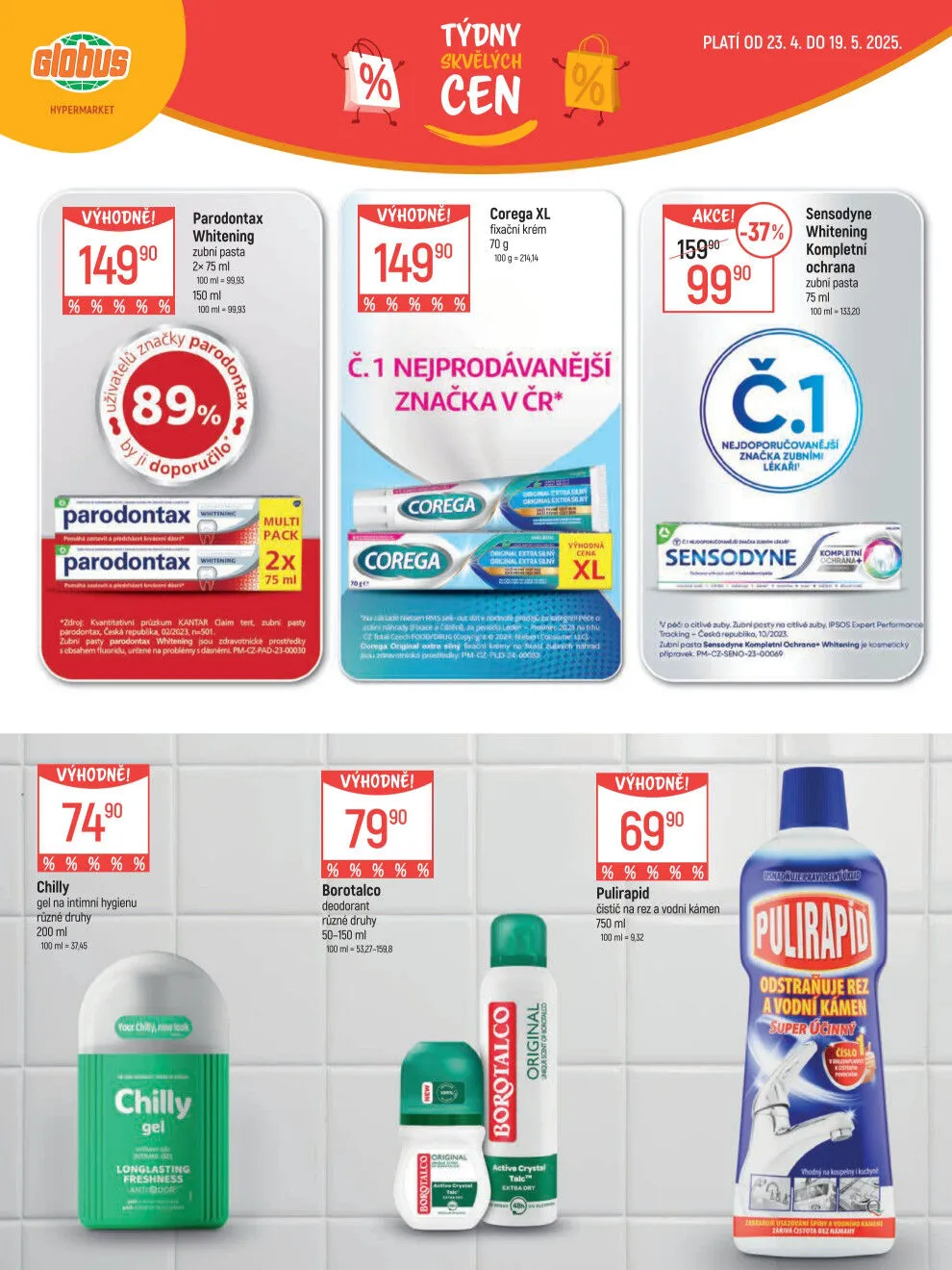 Také nabízíme fixační krém Corega XL 370 g za 99,90 Kč a zubní pastu Sensodyne whitening 75 ml za 149,90 Kč.