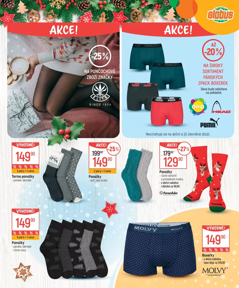 V letáku obchodu Globus najdete široký sortiment pánských a dámských ponožek a spodního prádla.