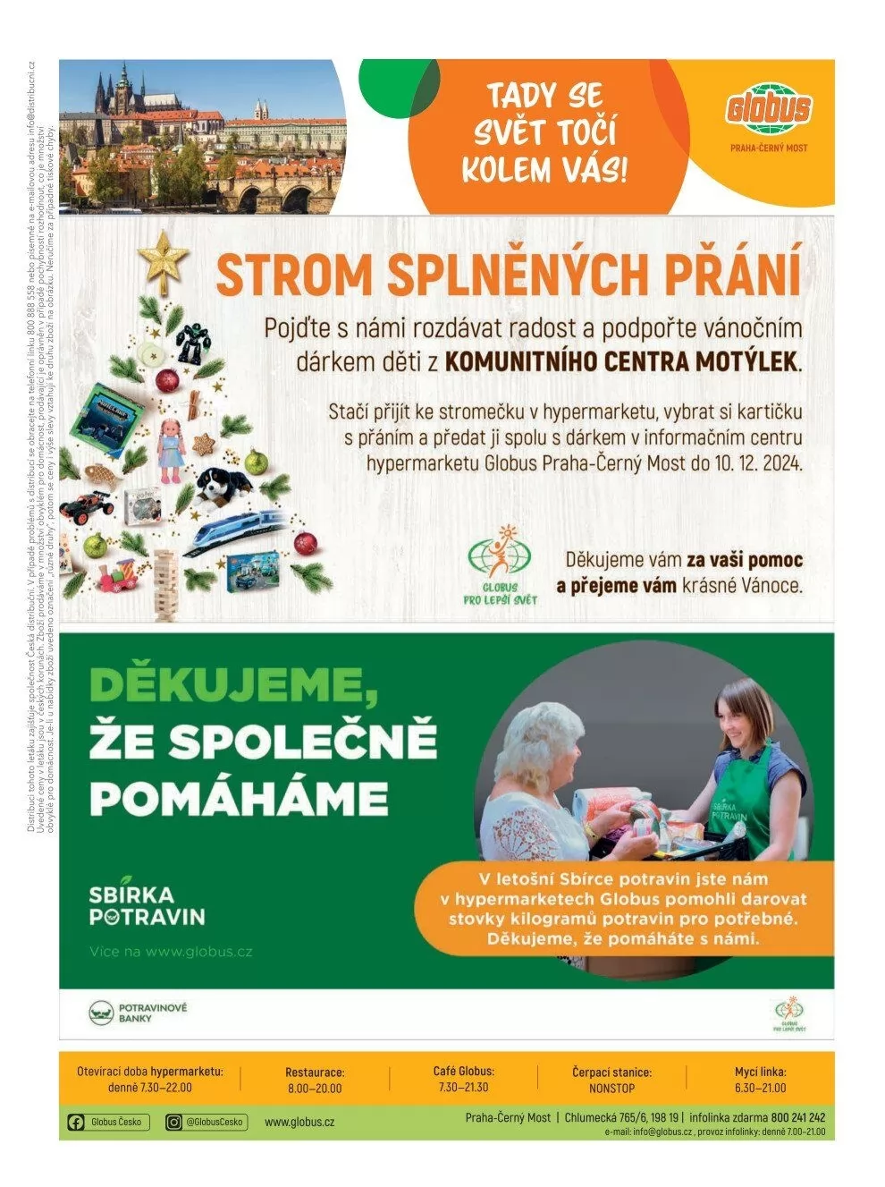 V obchodě Globus se můžete zapojit do krásné akce "Strom splněných přání". Pomozte dětem z komunitního centra Motýlek tím, že si vyberete kartičku s přáním a darujete jim vánoční dárek. Dárky můžete předat v informačním centru hypermarketu do 10.12.2024. Děkujeme za vaši pomoc a přejeme vám krásné Vánoce!