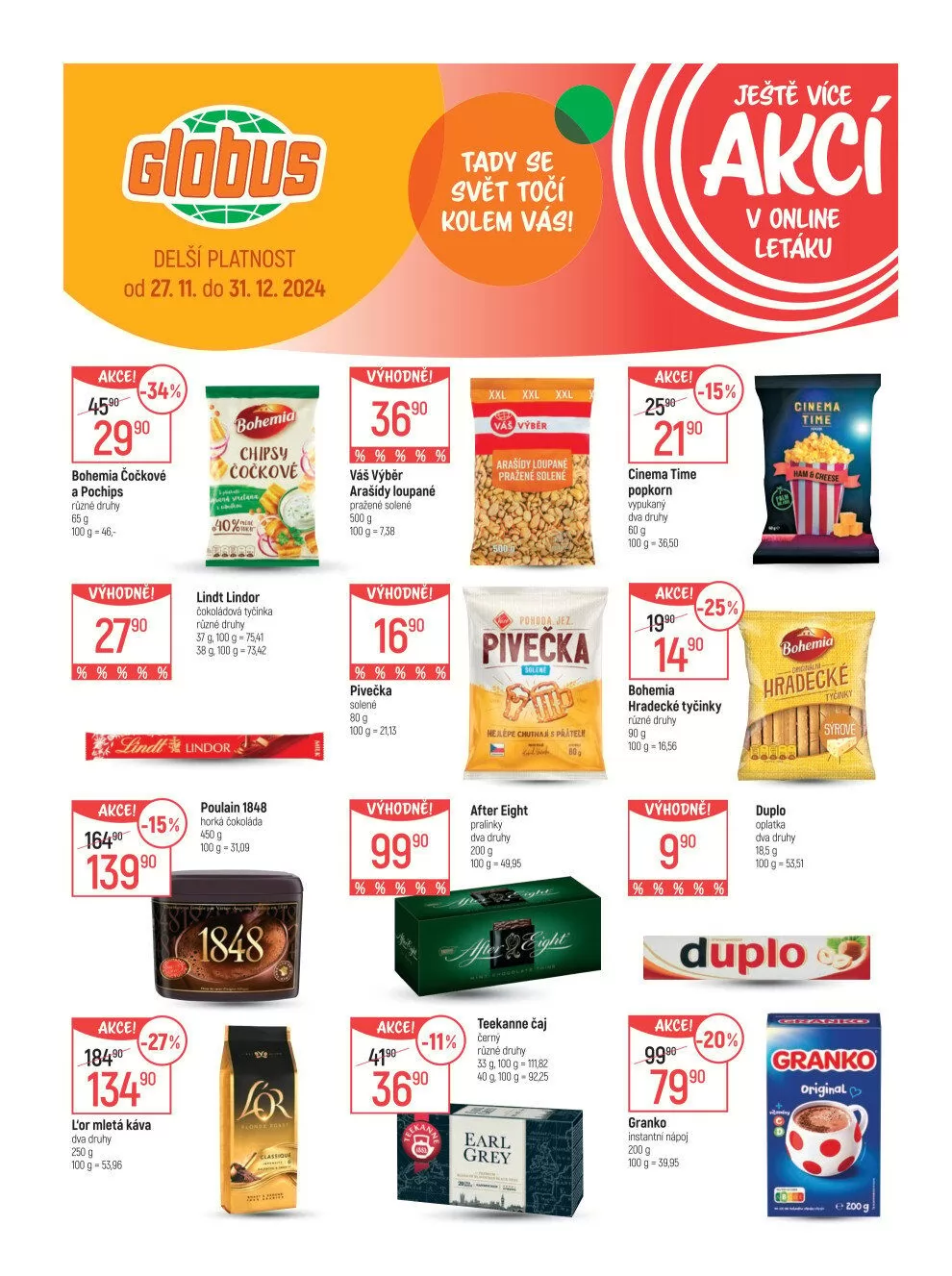 V letáku obchodu Globus najdete skvělé akce a výhodné nabídky, které platí od 27.11. do 31.12.2024.