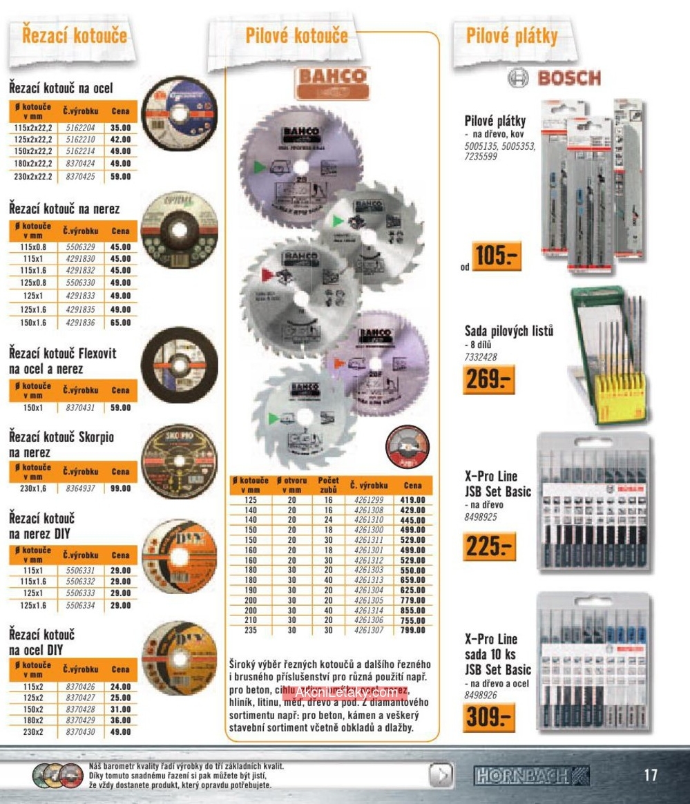 Hornbach Řezací kotouče, pilové kotouče, pilové pláty výprodej, akční leták