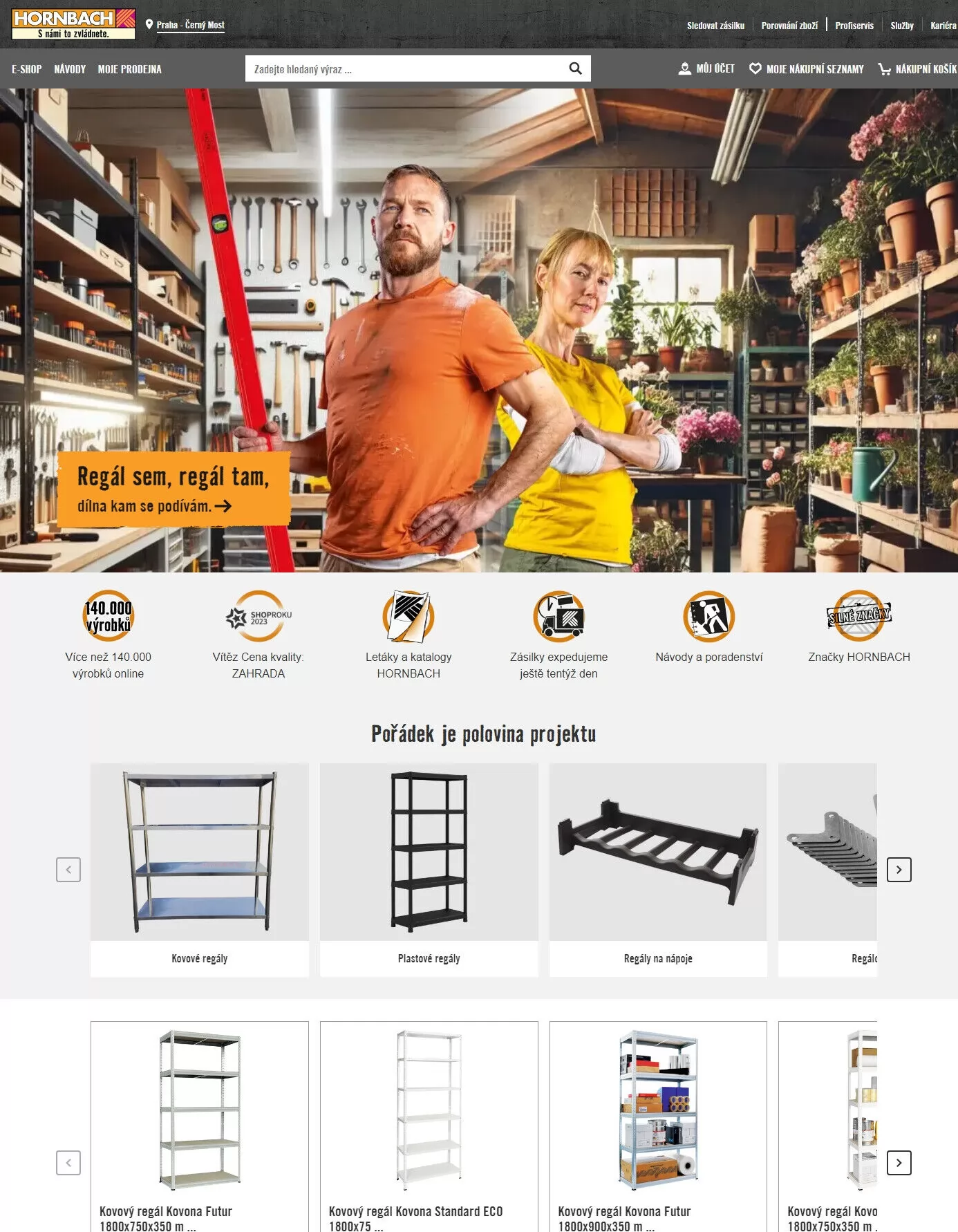 Nabízíme více než 140.000 výrobků online, včetně kovových a plastových regálů, které vám pomohou udržet pořádek.