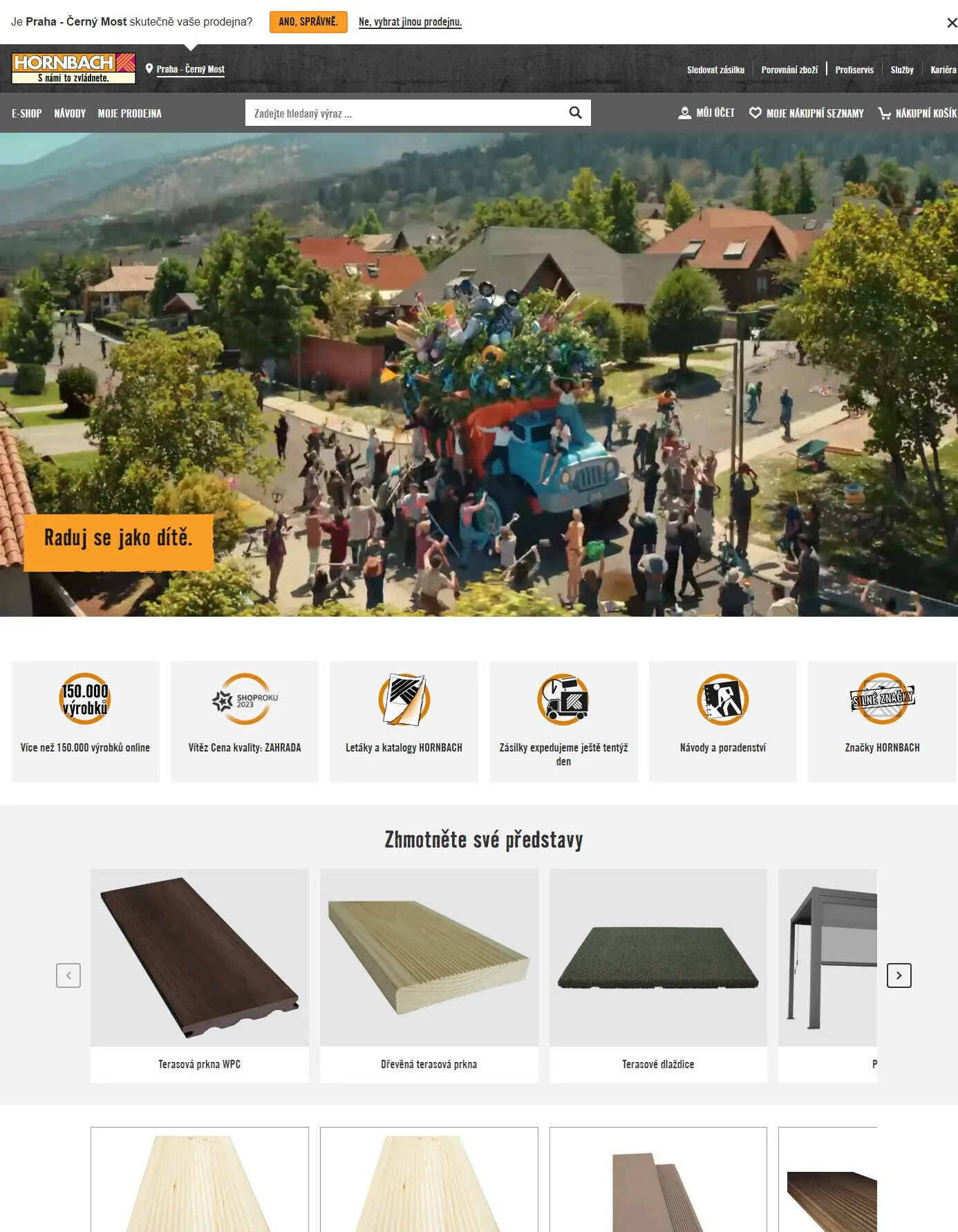 V obchodě Hornbach na Černém Mostě najdete širokou nabídku produktů pro vaši zahradu a domácnost. Nabízíme více než 150.000 výrobků online, včetně terasových prken WPC a dřevěných terasových prken. Naše terasové dlaždice jsou ideální pro vytvoření krásného venkovního prostoru. S námi to zvládnete – zajišťujeme expedici zásilek ještě tentýž den a poskytujeme návody a poradenství. Navštivte náš e-shop a zhmotněte své představy!