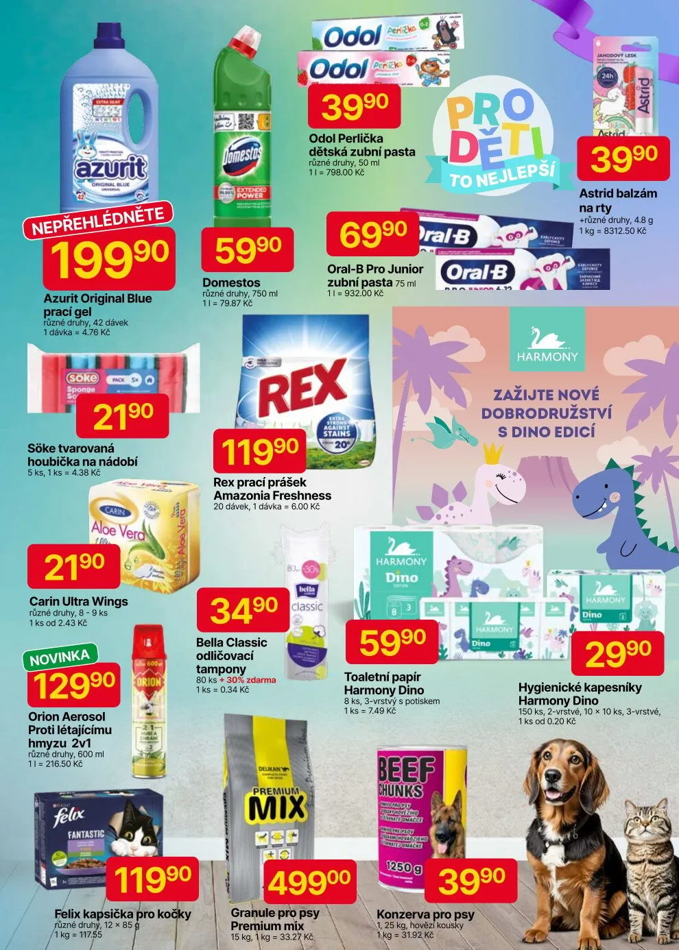 - **Toaletní papír Harmony Dino** - 8 ks, 3-vrstvý s potiskem, cena 119,90 Kč (7,49 Kč za ks).