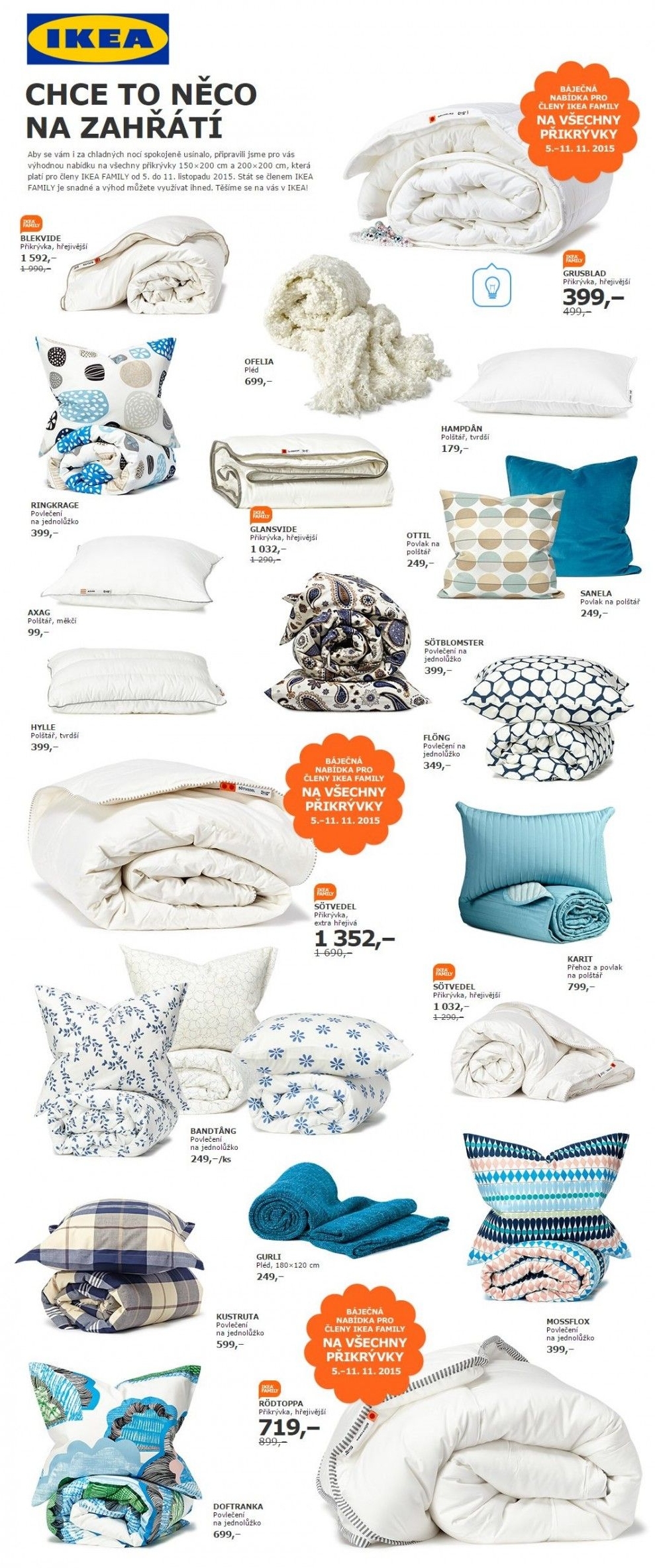 IKEA akční leták: deky a polštáře, akce o víkendu od 5.11. - 8.11.2015 strana 1/1