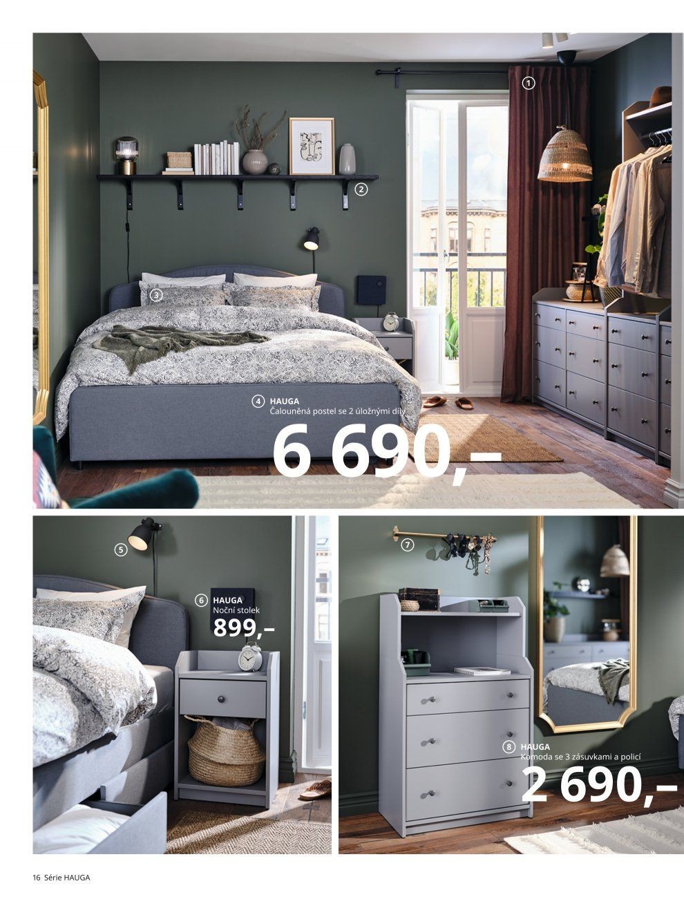 4 hauga čalouněná postel se2 úložnými di 6 hauga noční stolek oda se 3 uvkami a policí 7690,- 16 série hauga
