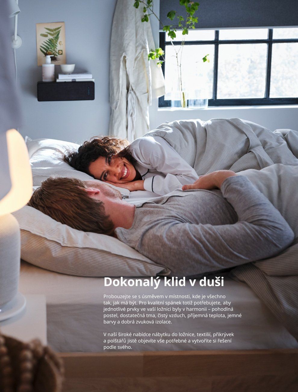 postel, dostatečná tma, čistý vzduch, příjemná teplota, jemné