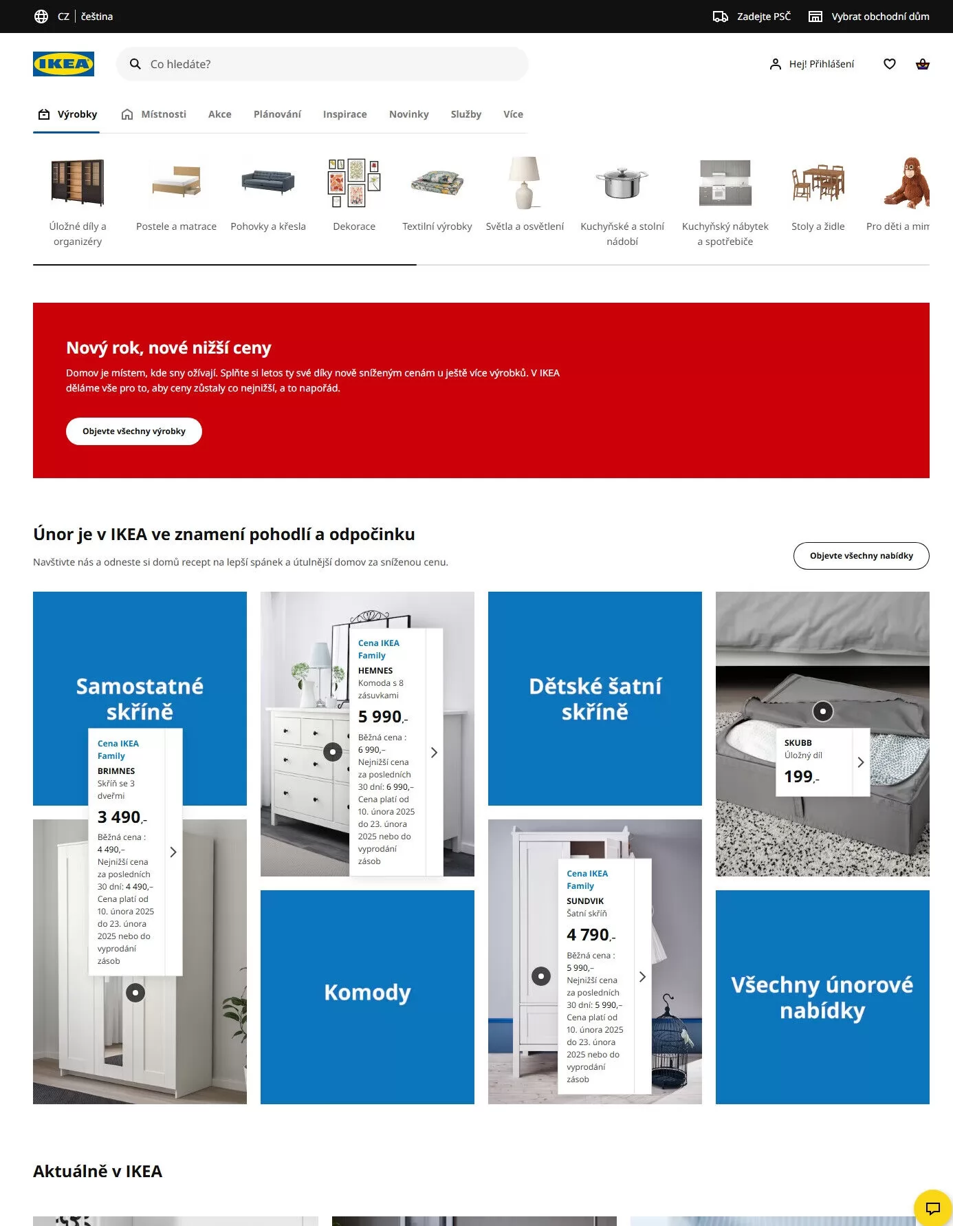 V únoru se můžete těšit na snížené ceny, které vám umožní splnit si sny o lepším spánku a útulnějším domově. Například skříň Brimnes je nyní za 3 490 Kč místo běžných 4 490 Kč, a komoda Hemnes s 8 zásuvkami je k dostání za 5 990 Kč místo 6 990 Kč.