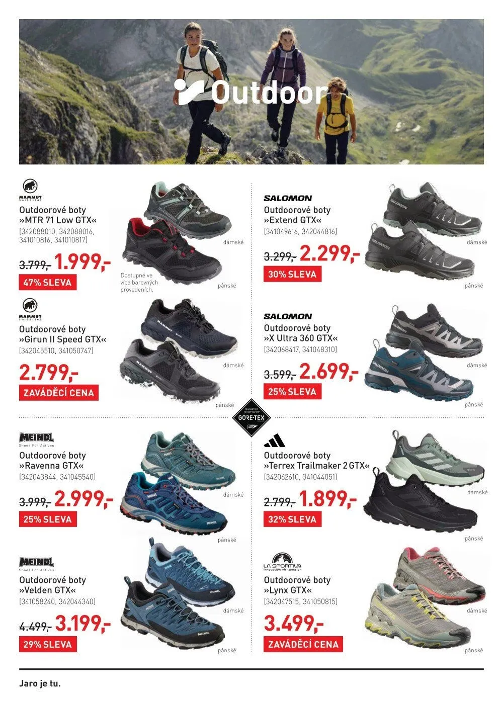V letáku obchodu Intersport najdete širokou nabídku outdoorových bot, které jsou ideální pro jarní dobrodružství. Mezi nejzajímavější produkty patří modely jako „mtr 71 low gtx“ a „girun il speed gtx“, které jsou nyní se slevou. Dalšími skvělými možnostmi jsou „ravenna gtx“ a „velden gtx“, které také nabízejí atraktivní ceny.