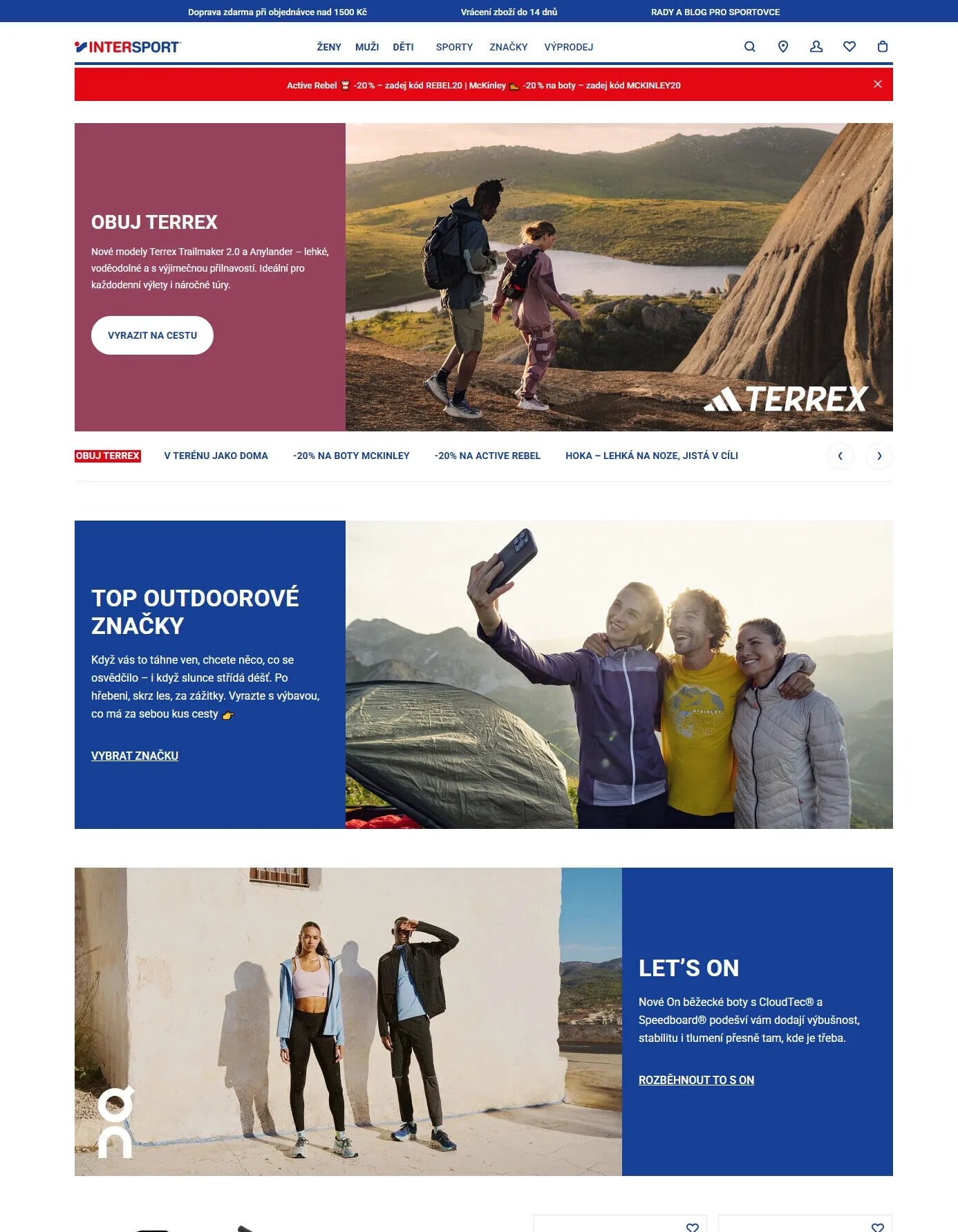 V akci jsou značky jako Active Rebel a McKinley, kde můžete získat slevu 20 % při zadání kódu rebel20 nebo mckinley20. Nové modely obuvi Terrex Trailmaker 2.0 a Anylander jsou lehké, voděodolné a ideální pro každodenní výlety i náročné túry.
