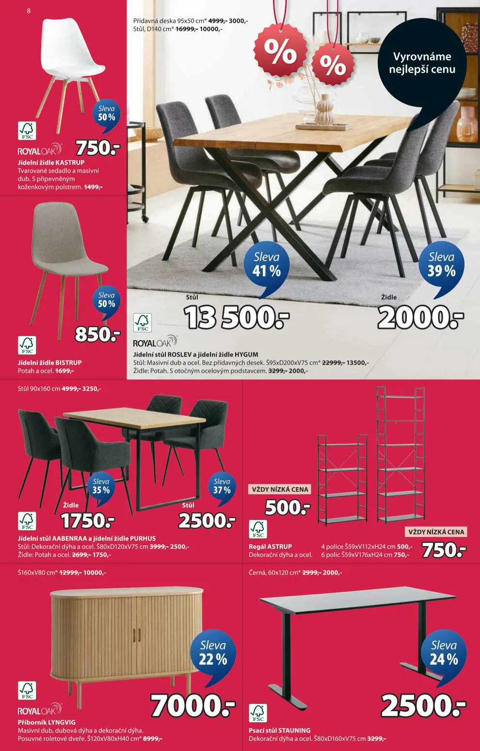 V letáku obchodu Jysk najdete širokou nabídku jídelních stolů a židlí za skvělé ceny.