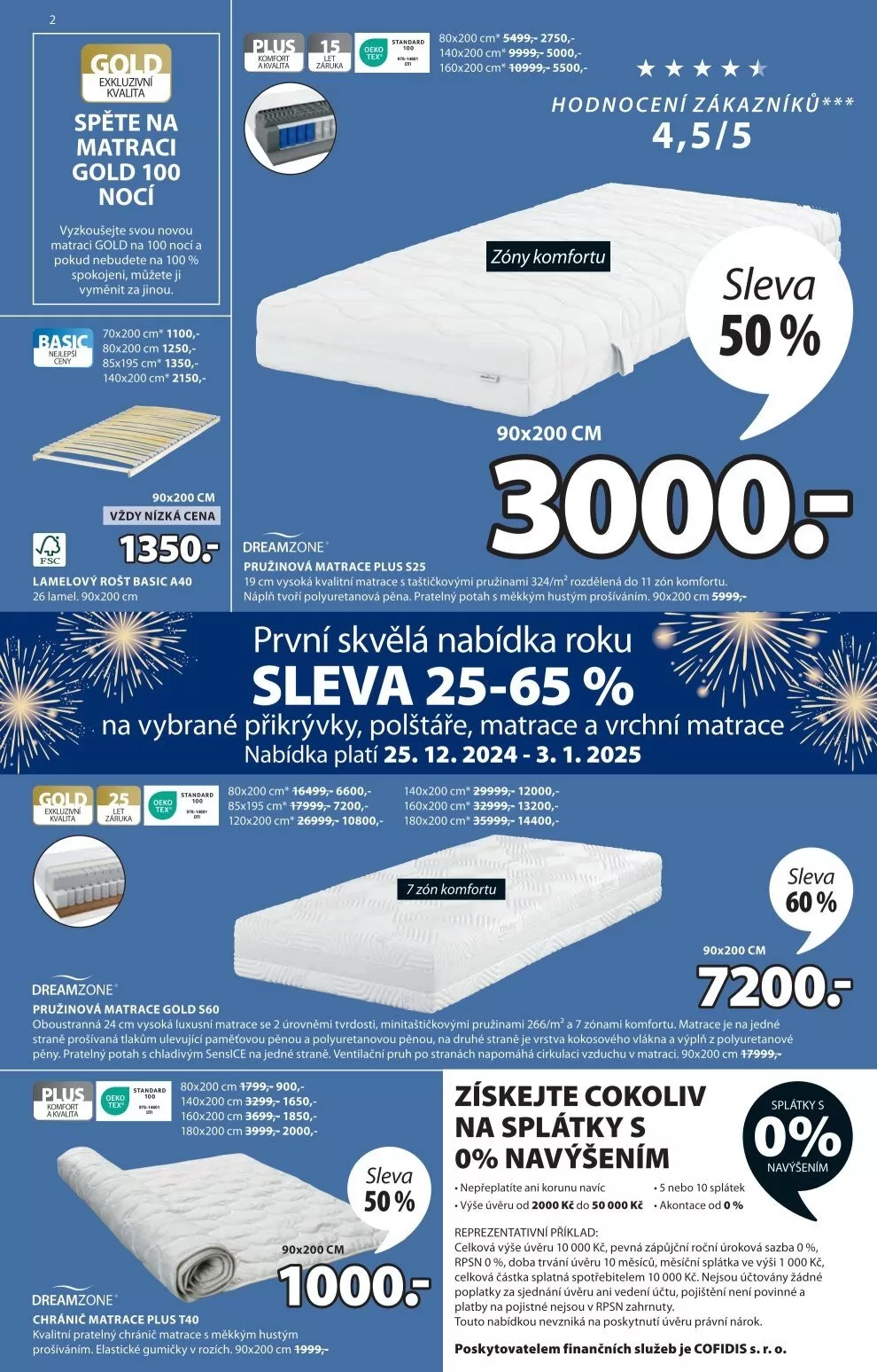 Nezapomeňte na naši skvělou nabídku s 25-65% slevou na vybrané přikrývky, polštáře a matrace, platnou od 25.12.2024 do 3.1.2025.