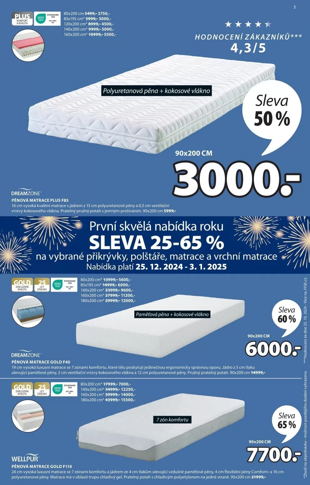 Nezapomeňte také na akci, která platí od 25.12.2024 do 3.1.2025, kde můžete ušetřit 25-65 % na vybraných přikrývkách, polštářích a matracích.
